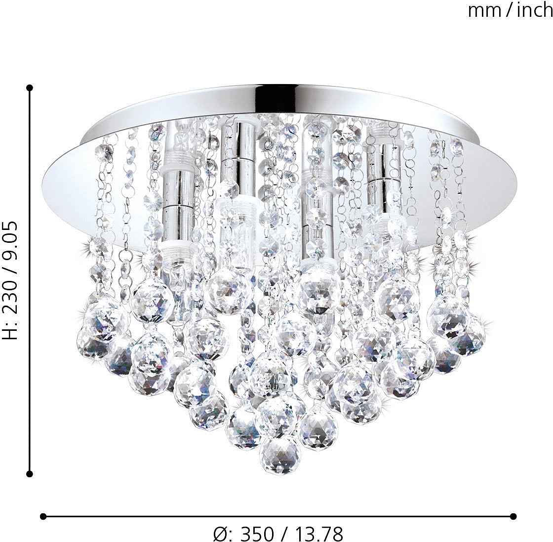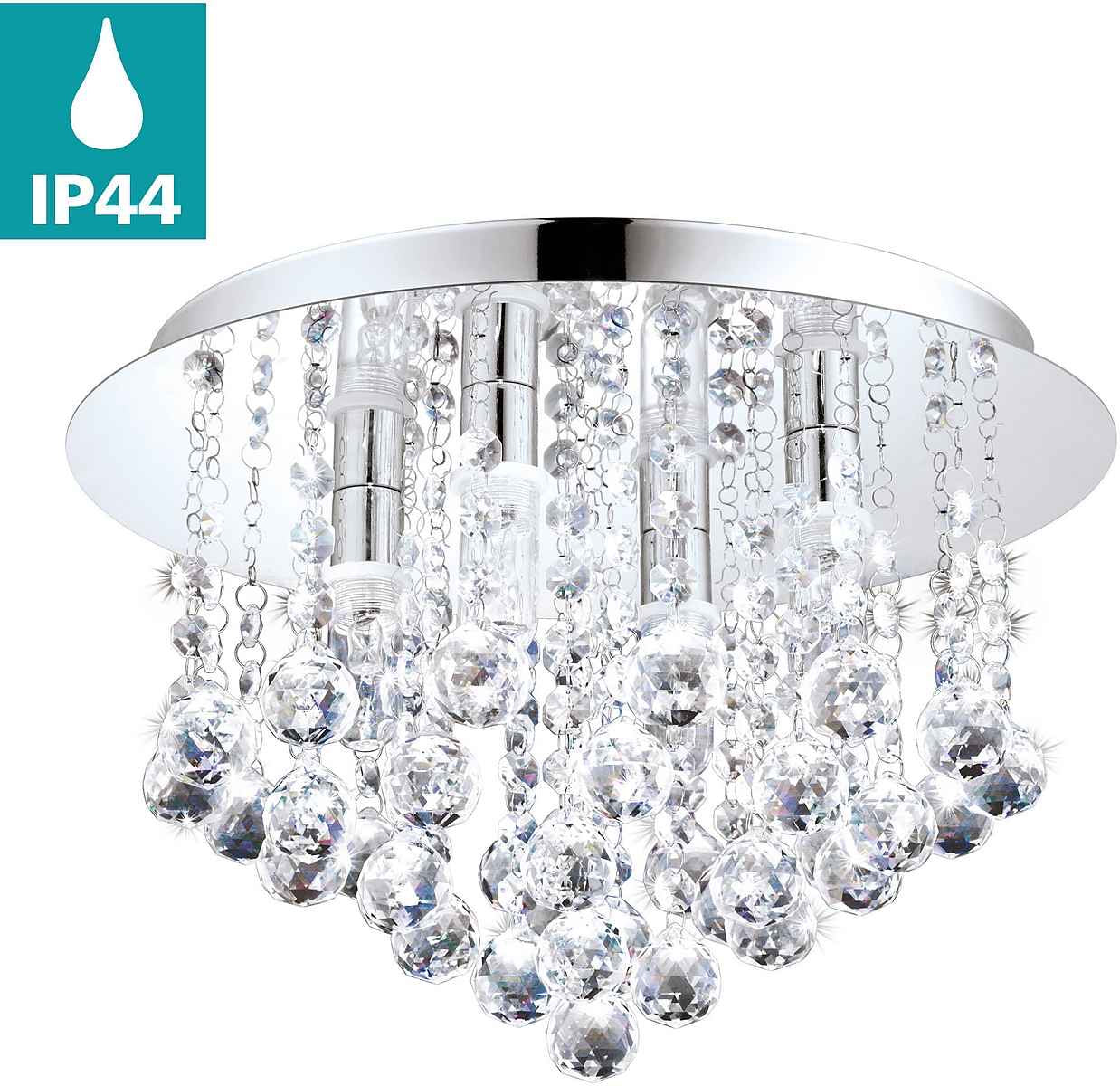 Schicke Bad-Deckenleuchte der Serie »ALMONTE«, aus Stahl und Kristallglas. Sie überzeugt durch ihr modernes Design und schafft wundervolle glänzende Lichteffekte. Inklusive energiesparenden LED-Leuchtmitteln. Weitere Details: 4-flammig. Je 2,5 Watt. 300 Lumen. 3000 Kelvin. Inkl. LED-Leuchtmittel, 4 mal G9, wechselbar. Material: Stahl, Kristallglas. Schutzart IP44 - spritzwassergeschützt. Fürs Bad geeignet. Nicht dimmbar. Geringer Energieverbrauch aufgrund LED-Technik. Gewichteter Energieverbrauch kWh/1000 h: 12. Druchmesser 35 cm. Höhe 23 cm.