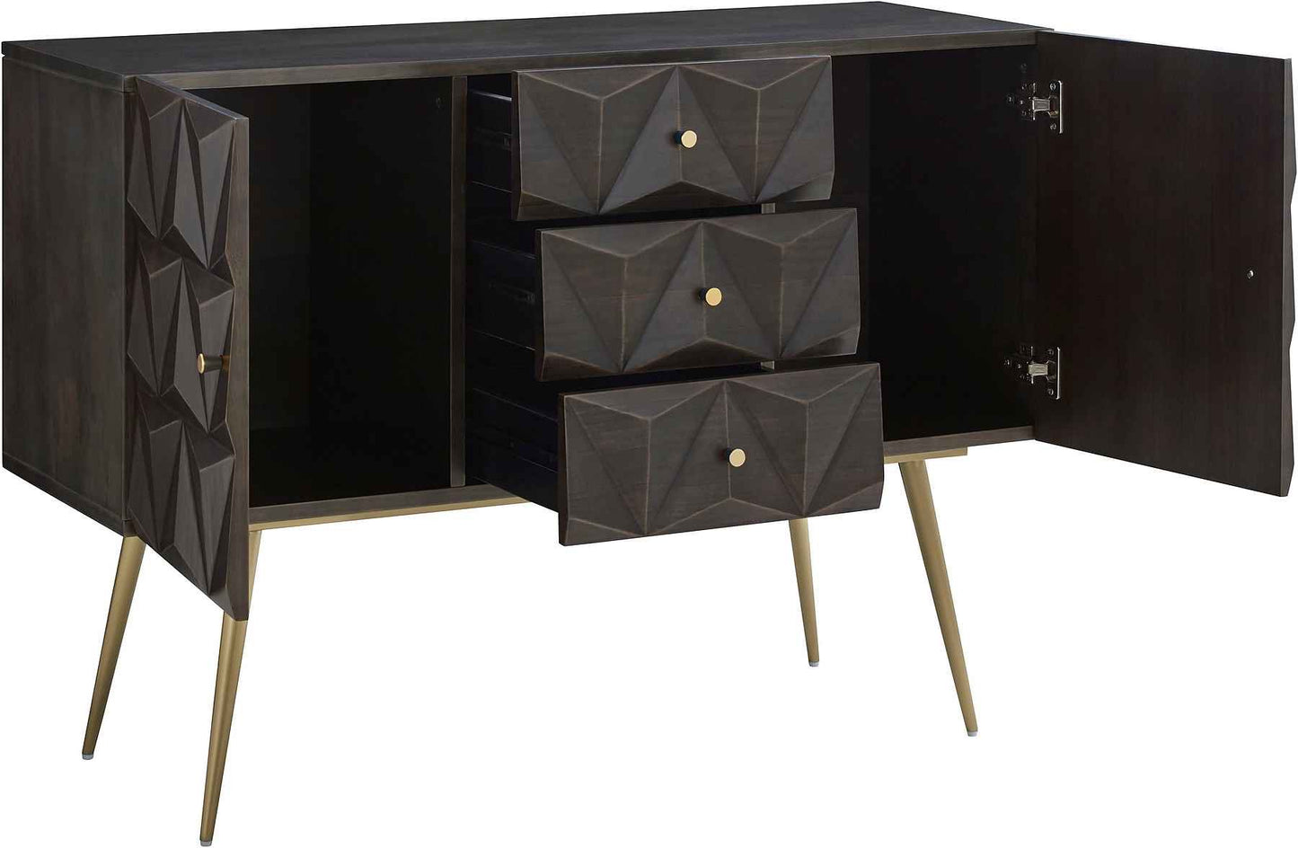 Das Sideboard »Brüssel« von GMK Home & Living besticht durch sein modernes und ausdrucksstarkes Auftreten. Insbesondere die Front ist attraktiv im 3D-Look gestaltet. Seiten und Oberboden sind glatt gehalten. Die Türgriffe sind im schlichten Goldton gehalten. Die vergoldeten Füße sind spitz zulaufend. Das teilmassive Möbelstück wird aus FSC®-zertifizierten MDF hergestellt. Es bietet viel Stauraum im Wohn- und Essbereich. Überzeugt auch durch seine hochwertige Verarbeitung: das ausdrucksvolle Sideboard »Brüssel« von GMK Home & Living.